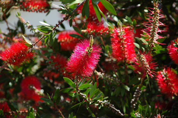Flaschenputzer Callistemon citrinus ist in den Gärten Madeiras häufig anzutreffen und beeindruckt mit seinen karminroten Blüten. |