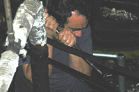 Zuckerrohrfabrik von Calheta Oft muss mit Brachialgewalt nachgeholfen werden. |