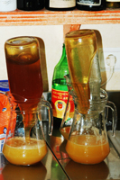 Schnaps Zuckerrohrschnaps (Aguardente), vermischt mit Honig und Orangensaft, ergibt das Getränk "Poncha" |