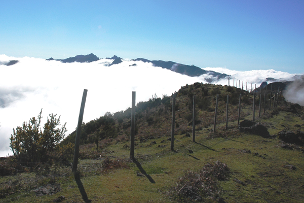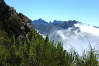 Der Pico Ruivo Am Horizont erhebt sich der höchste Berg Madeiras, der 1860 Meter hohe Pico Ruivo da Santana. |