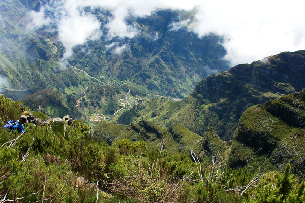 Steiler Abstieg Fast senkrecht geht es hinunter zum Ecumedia-Pass, dem wichtigsten Übergang von der Südseite zur Nordseite Madeiras |
