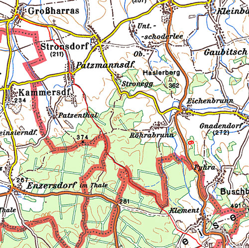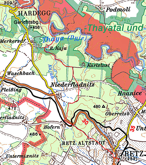 geht es nach Norden bis dieser in die Thaya mündet. Die Thaya flussaufwärts zum Umlaufberg, von dem man einen