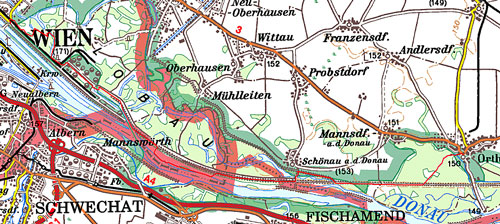Ölhafen in die Raffinerie Schwechat gepumpt wird. Später wieder zurück auf den Marchfelddamm und diesen entlang bis
