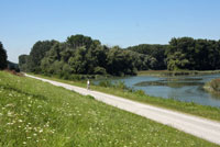 direkt am Ufer der Donau entlang bis zu einer Brücke, die über den Äuglarm