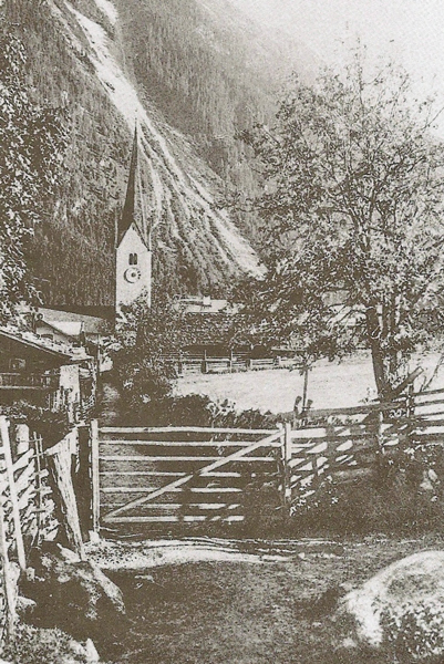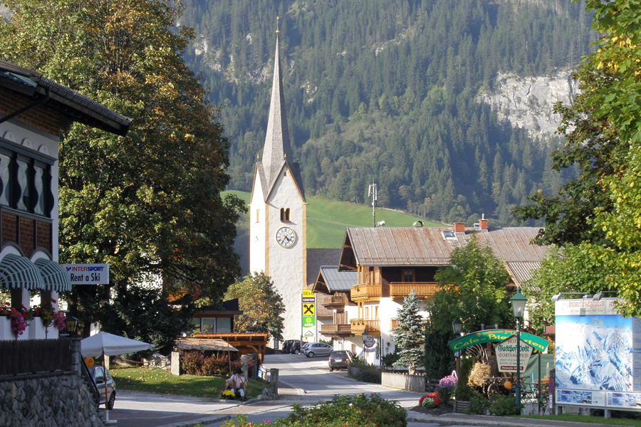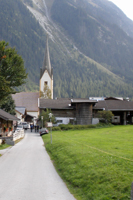 die Hauptstraße von Krimml mit der Dorfkirche,