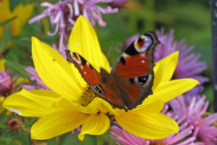 Schmetterlinge auf bunten Blüten bewundern konnten. |