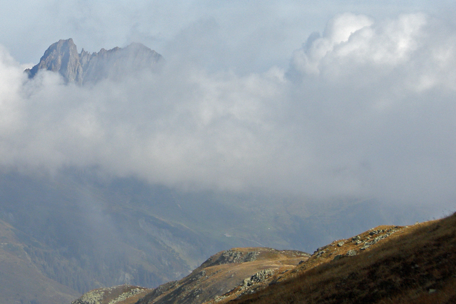 hüllte sich der Berg noch in Wolken, doch der Gipfel war nebel- bzw. wolkenfrei. |