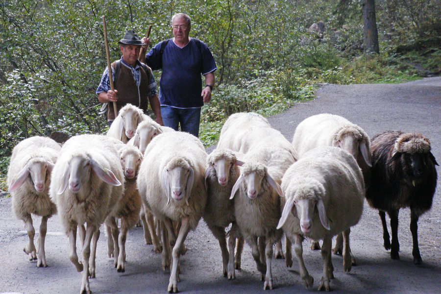 wir unserem Quartiergeber, der seine Schafherde von der Sommerweide im Achental hinunter nach Oberkrimml