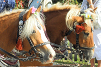 Der Wagen mit der Entedankkrone wurde von 4 Noriker-Rappen