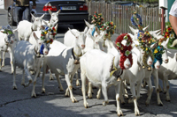 folgte der Almabtrieb, bei dem man sowohl festlich geschmückte <- Saanen-Ziegen,