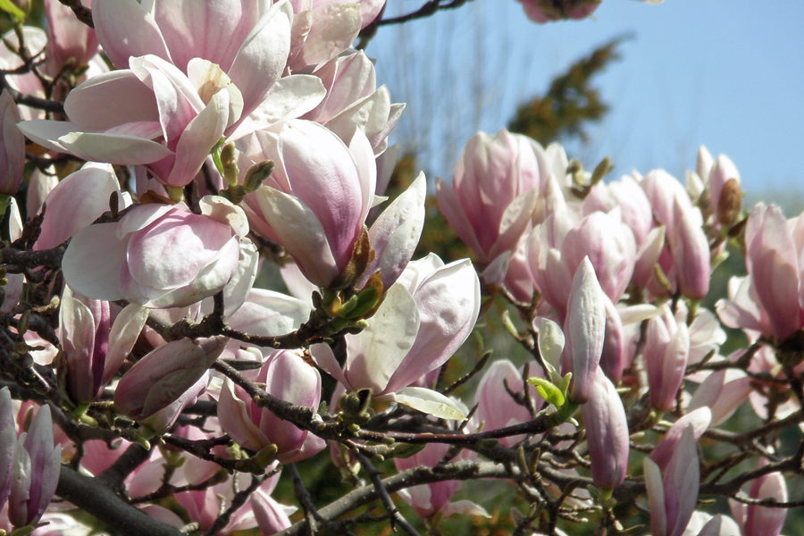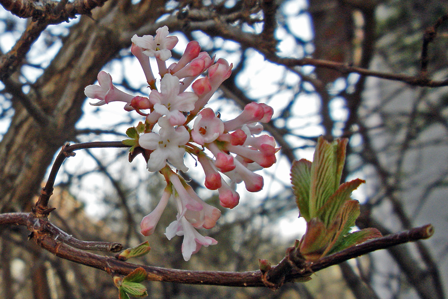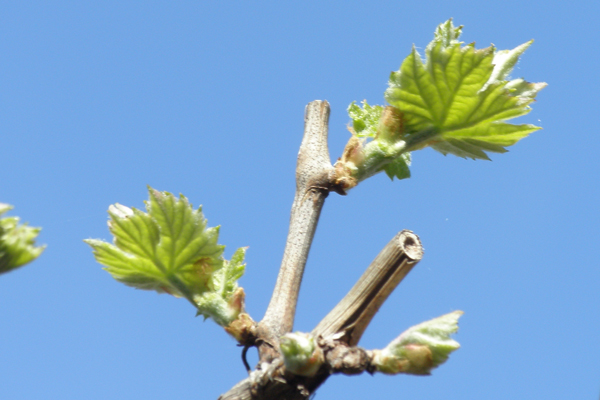 durch Weingärten, vorbei an den ersten blühenden Bäumen und Sträuchern, nach