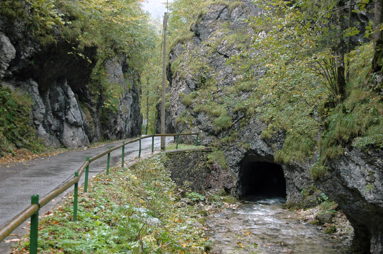 Schneealpenstollen, durch den seit 1974 Wasser aus dem Karlgraben, vor allem