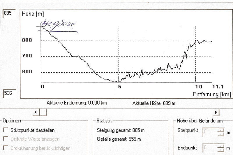 insgesamt 865 m Gefälle