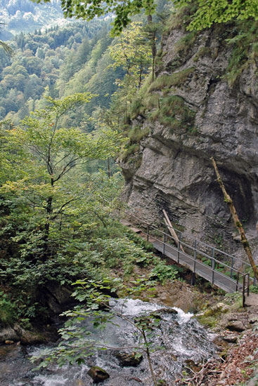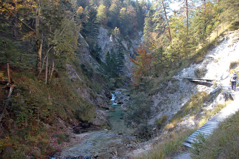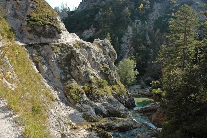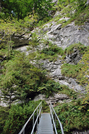 gesicherte Steig stets am linken Ufer des Ötscherbachs flussaufwärts (8), bis