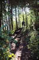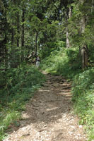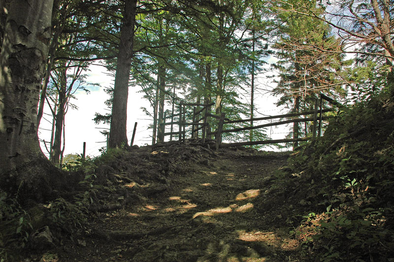 der beiden Weiler wird die Forststrasse zum Pfad, der steil den bewaldeten