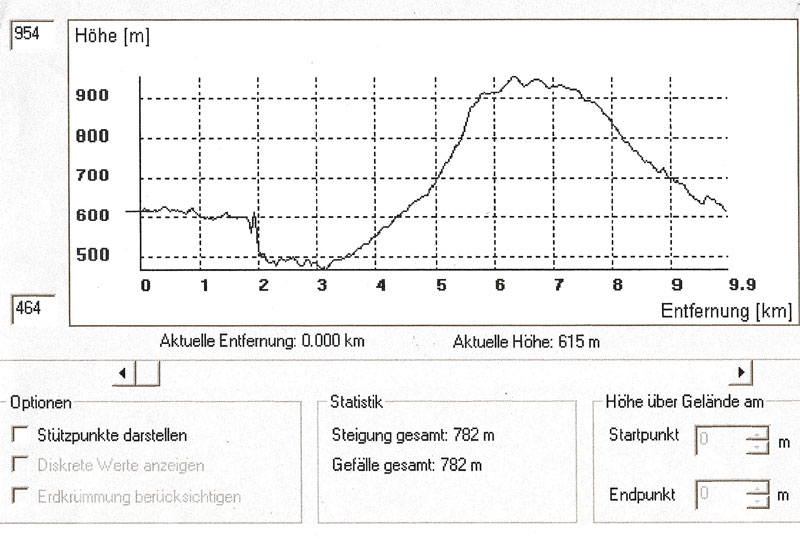 insgesamt 782 m Gefälle