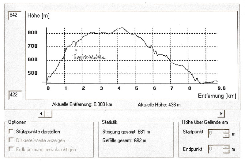 insgesamt 681 m Gefälle