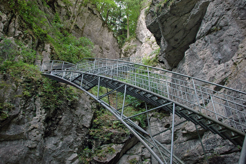 Plätschern des Baches wird zum Rauschen (1). Unvermittelt wird der Steig sehr steil und führt über Stiegen und
