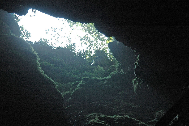 waagrechter Stollen ermöglicht den gefahrlosen Zugang, denn die Höhle fällt