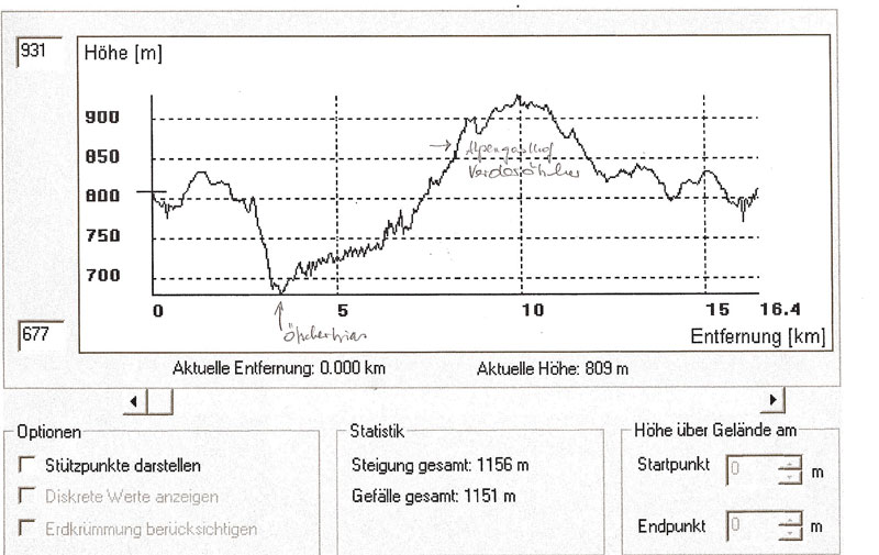anklicken! Steigung insgesamt 1.156 m Gefälle