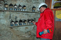 der geführten Begehung der Höhle bekommen die Besucher Karbidlampen (6), da