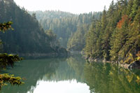 und rechts wachsen bis zu 400 Meter hohe Steilhänge in die Höhe, teilweise