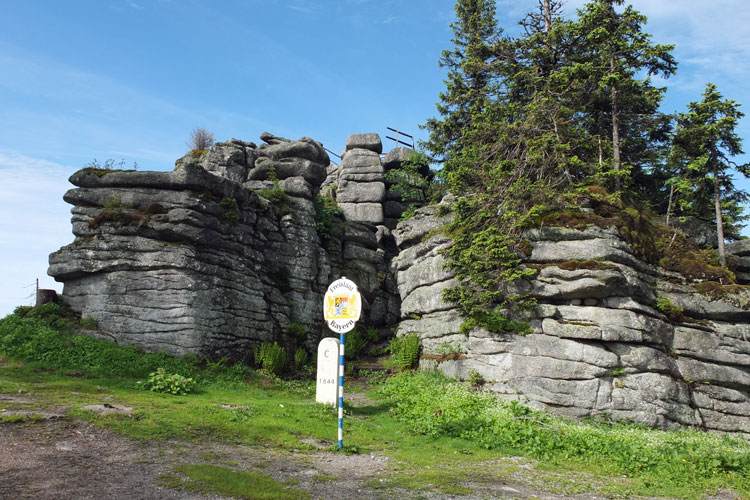 Unsere Wanderung entlang des Nordwaldkammweges beginnt am Gipfel des 1.332 Meter hohen Dreisesselberges (1) an der Grenze zwischen Bayern und Tschechien.