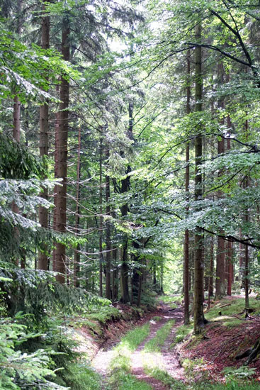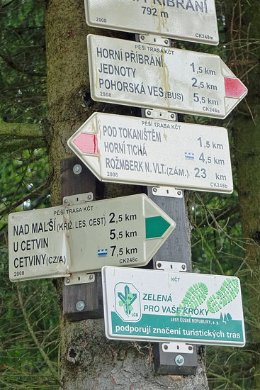 Aus diesem Grund verwerfen den ursprünglichen Plan, einen kleinen Umweg über den „Moldaublick“ zu machen und wandern durch dichten Wald über den Sulzberg weiter ostwärts.