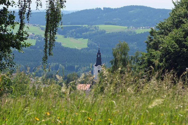Von oben hat man einen schönen Ausblick ins östliche Niederbayern und auf den sich auf der tschechischen Seite erstreckenden Nationalpark Sumava.