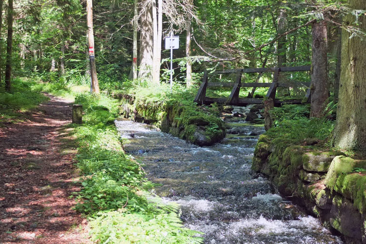 Der Weg durchquert oberhalb von Afiesl den Hinterwald und führt bei der Löfflersäge über die Steinerne Mühl.