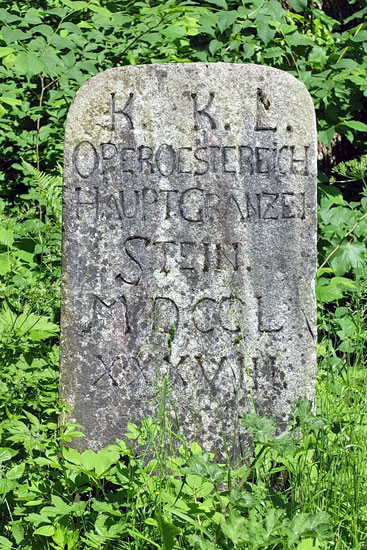 Bei einem Grenzstein (14) aus dem Jahr 1788 führt der Weg wieder vom Kanal weg und folgt dem tschechisch – österreichischem Grenzverlauf, bis dieser wieder den Zwettlbach überquert.