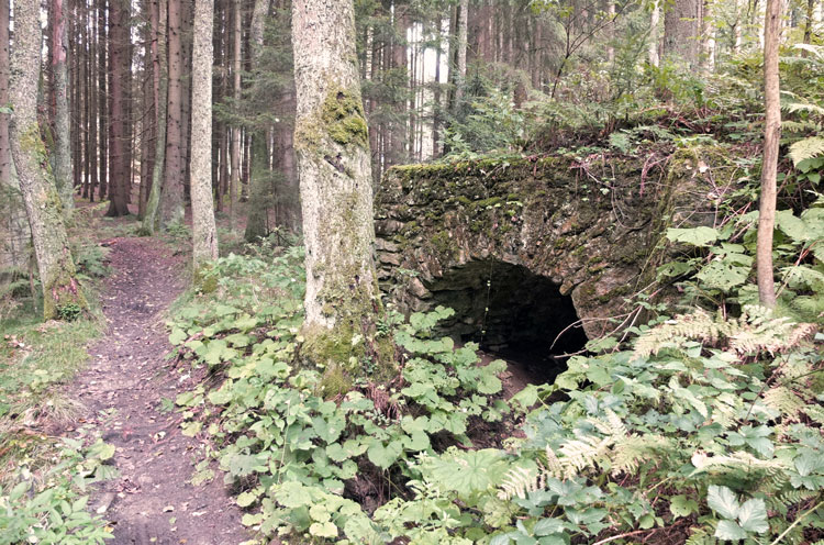 Ein tiefer Graben und eine alte Steinbrücke sind heute noch erkennbar.