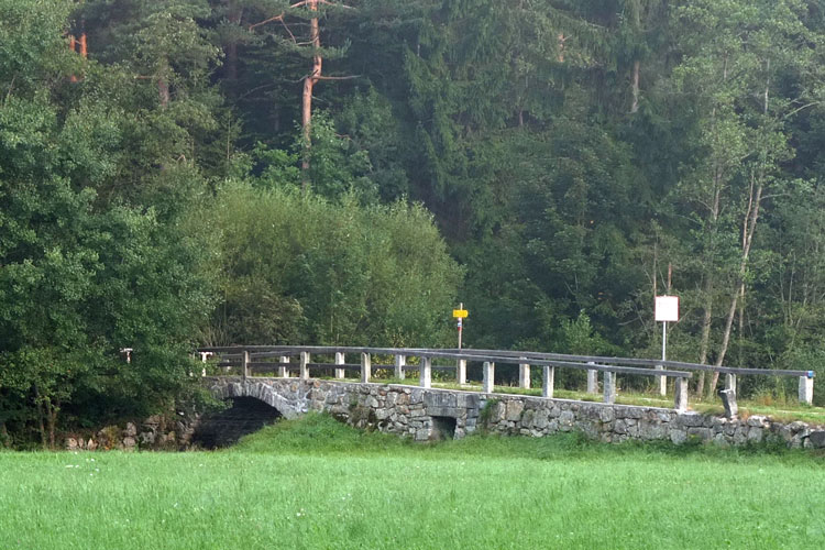 Hier überqueren wir auf einer alten Steinbrücke (3) die Maltsch und betreten wieder das Gebiet der Tschechischen Republik (4).