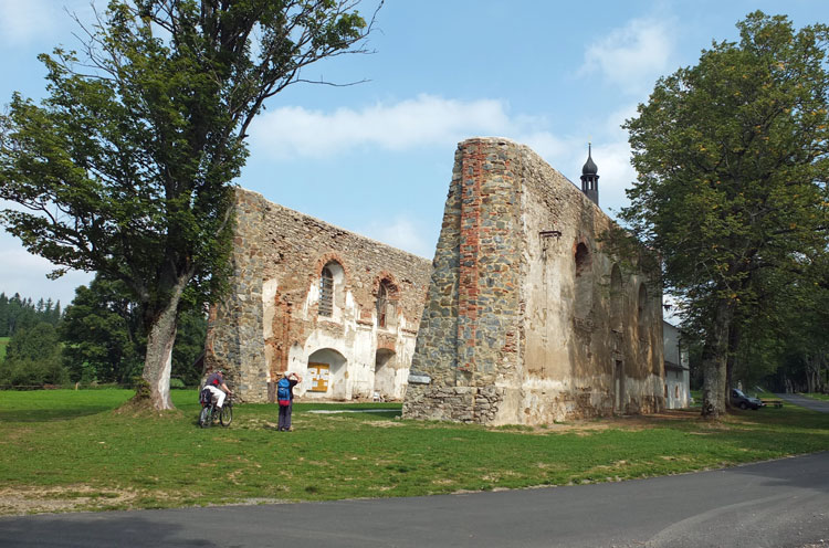 Ein Gedenkstein (3) erinnert daran, dass nach dem 2. Weltkrieg zahlreiche deutschsprachige Dörfer in Tschechien geräumt wurden und deren Bewohner nach Österreich ziehen mussten.