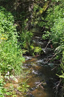 Kurz darauf führt uns der Weg ans Ufer des Schwemmkanals, der sich hier noch als schmales Bächlein mit geringem Gefälle zeigt (8).