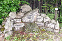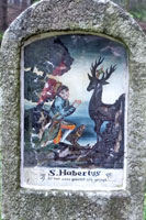 Vorbei an einem Steinmarterl (2) mit der Darstellung des Hlg. Hubertus, der gemäß der Inschrift „mehr gebetet, als gejagt“ haben soll, führt der Weg durch den Sternwald zum Fuße des Sternsteins.