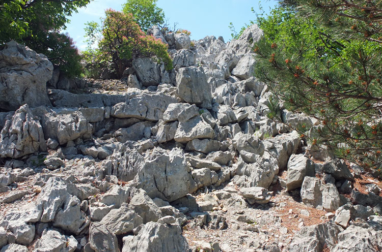 Karst mit seinen zerklüfteten Felsen unmittelbar mit der Bucht von Triest