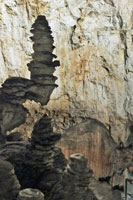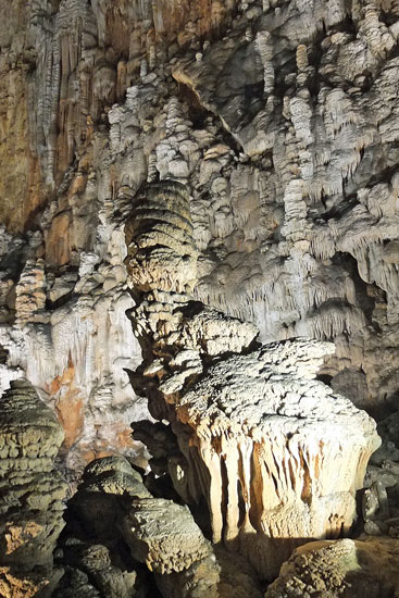 von riesigen Tropfsteingebilden, die oft wie aufeinander gestapelte Teller