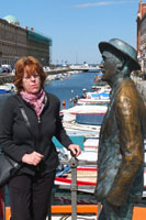 Brücke steht die Bronzestatue von James Joyce, der in den Jahren 1904 – 1915