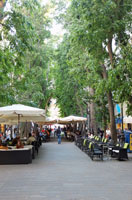Allee und die dort angesiedelten Straßencafés, Eisdielen und Restaurants. Nicht versäumen
