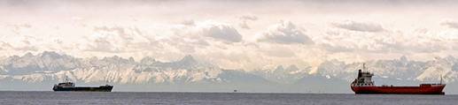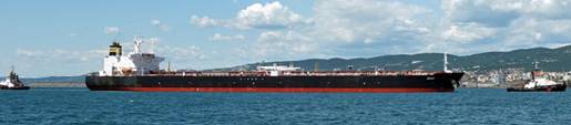 werden in der Bucht von Muggia von 2 kleinen Lotsenbooten zum Ölhafen