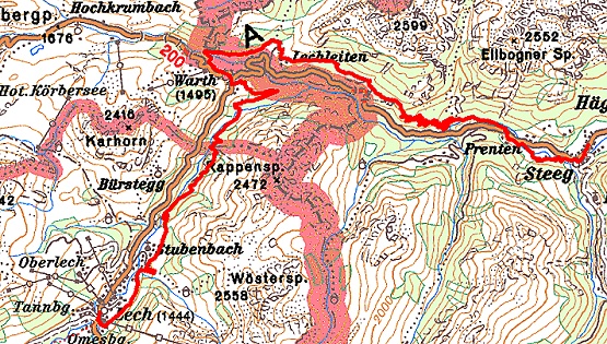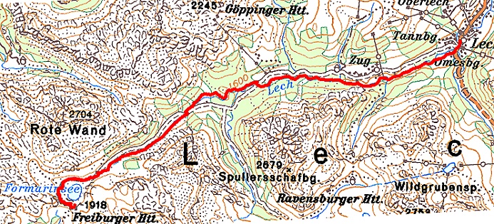 von rund 1.540 m, ehe der Lechweg steil talwärts