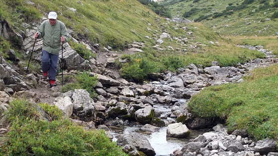 nach einigen 100 Metern im Bachbett Wasser erkennen eher noch Lacken, als fließendes Gewässer.