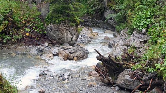 durch das Karstgestein nach Norden ins Große Walsertal fließt und nur ein