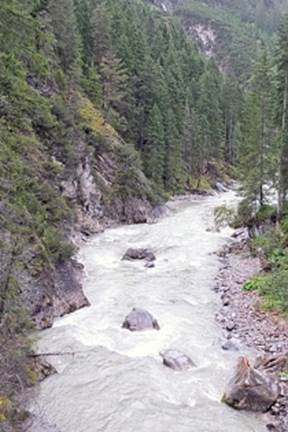 wir den reißenden Lech und nähern uns unserem Tagesziel, Steeg.