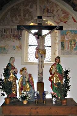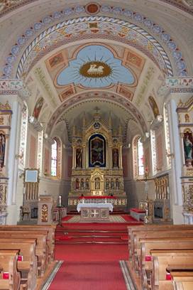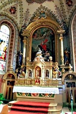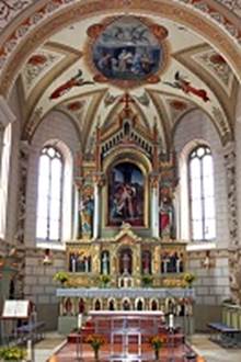 schönen Altar und ein herrliches Deckengemälde beeindruckt.