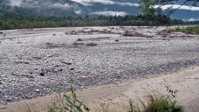 die zum Großteil in der Nähe des hier sehr breiten Flussbettes angelegt