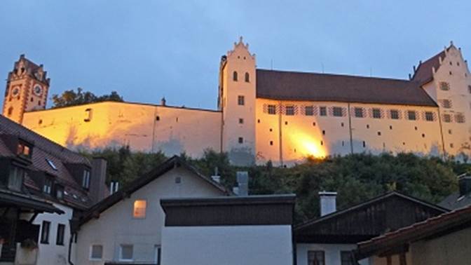 Fenster haben wir am Abend einen schönen Blick auf die Nordseite des „Hohen Schlosses“ …