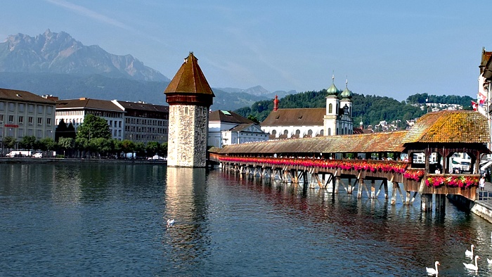 Wahrzeichen der Stadt ist die Kapellbrücke, mit 203 Metern Länge die
