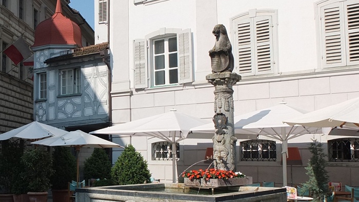 Brunnen befindet sich am Weinmarkt, wo die Luzerner Bürger im Jahre 1332 das